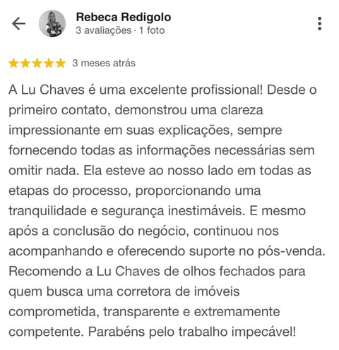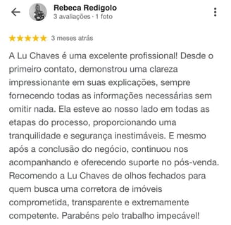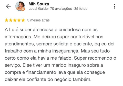 Você não pagará nada a mais pelo meu atendimento premium. O valor que você pagará será o preço normal de mercado, pois sou remunerada pela comissão paga pela construtora na venda do imóvel.